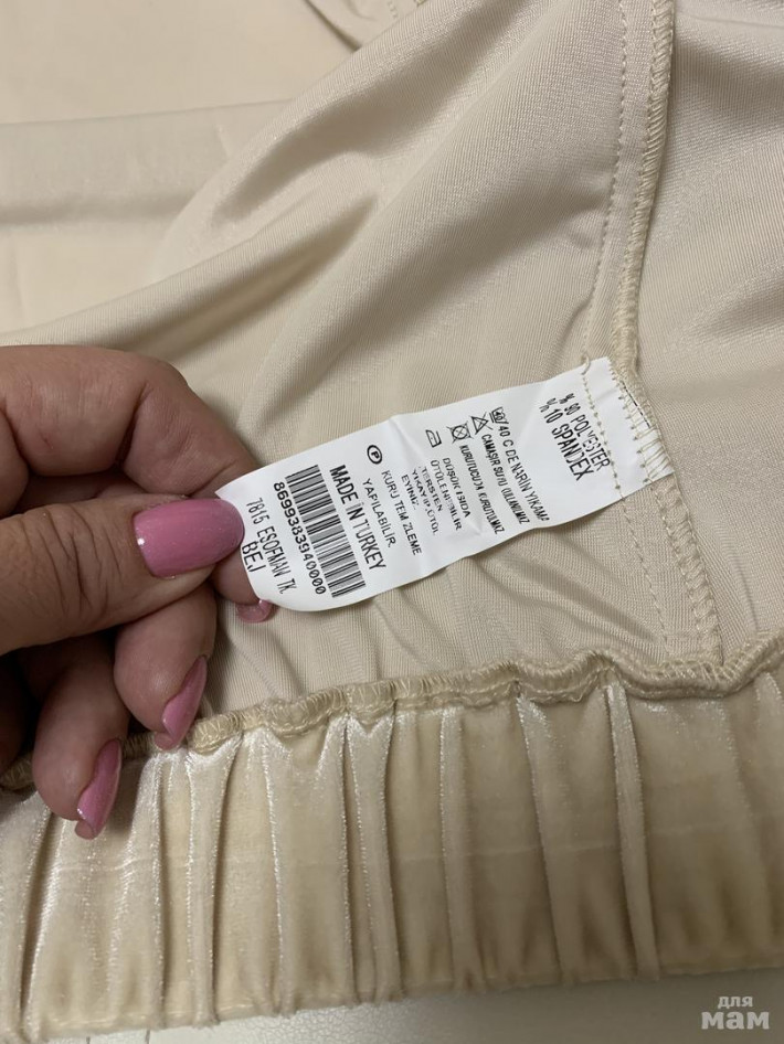 В состоянии нового, одели 1-2 раза, в изоляции некуда было в нем ходить. Цвет светлее, чем на фото. Ткань очень красивая с жемчужным переливом. Все бусины и стразы на месте.