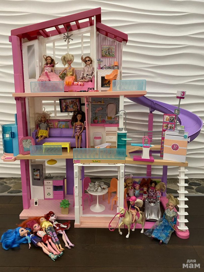 3 этажный Дом мечты Barbie . В дом предлагаю 11 больших кукол Barbie +9 куколок маленьких включая 2-х новорожденных деток+наездница на лошадке .Машина Mers коллекционная миниатюра (стоила дороже домика)+фарфоровый набор детской посудки . целый пакет аксессуаров для куколок-туфельки,сумочки и т.д. Все,что Вы видете на фото продам за 14 тыс .
