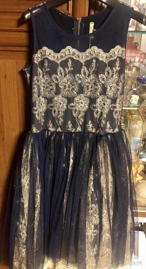 Вечернее платье Маленькая Леди. Новое, с ценником. Платье шикарное, из дорогой коллекции. Жаль расставаться, но переросли((( Цвета: синий и золотой. Размер 152, но до 160 точно подойдёт. Стоило 11500р. Отдам за 5000р.
