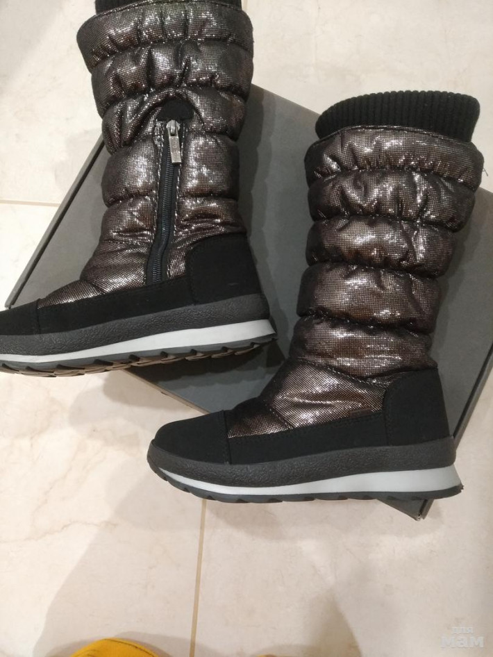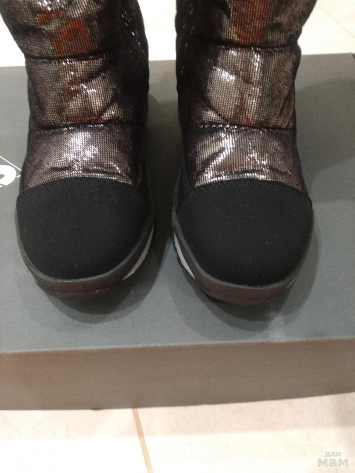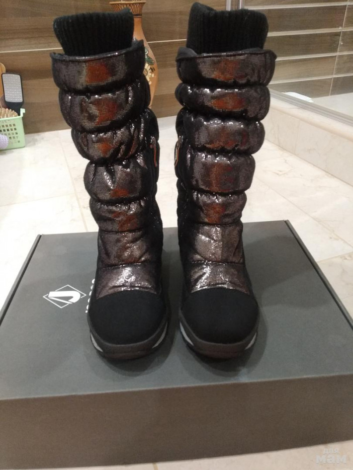 Очень красивые и теплые сапожки, фирма в рекламе не нуждается, кто хоть раз попробывал уже становятся постоянными покупателями.....Состояние НОВЫХ.....прогуляли раза 3, не успели поносить.....