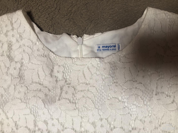 Платье Mayoral. Размер 14. Надето 1 раз. Белое, воздушное. Стразы на поясе. 800руб.