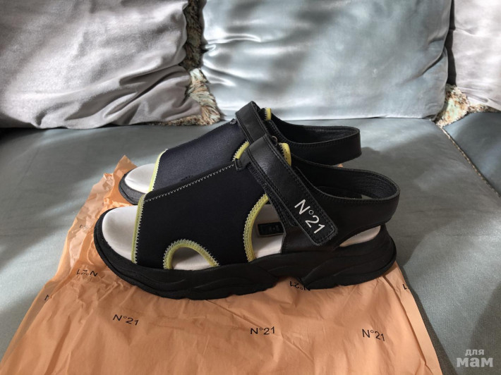 Очень стильные и удобные сандалии,вверх ткань( хорошо тянется) поэтому садится на любой подьем .Задник и ремешок кожа 100%.Размер 37.Носили активно.