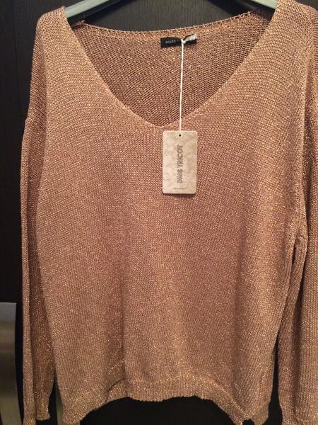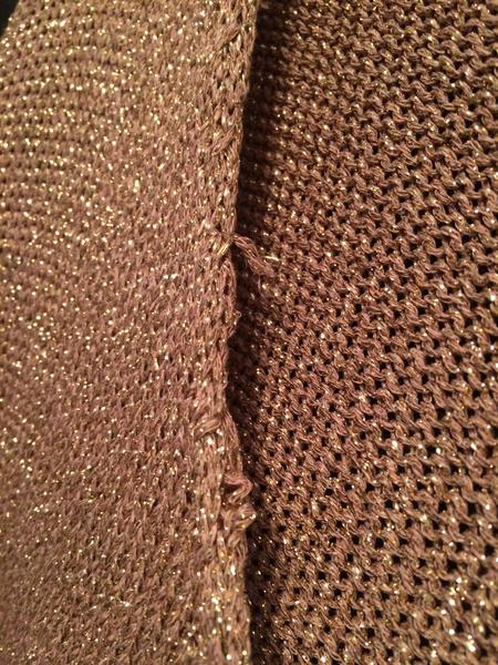 все хорошо -свитерок фасон не спущено на плечо получается ? вырез смущает большой а вторая блуза что за ткань низа .нет фото на манекене что бы фасон понять-спасибо