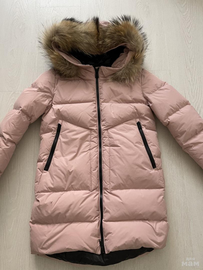 Нежный и легкий пуховик в отличном состоянии, хорошо набит пухом. Мех на капюшоне отстегивается.замеры: длина спереди - 76 см