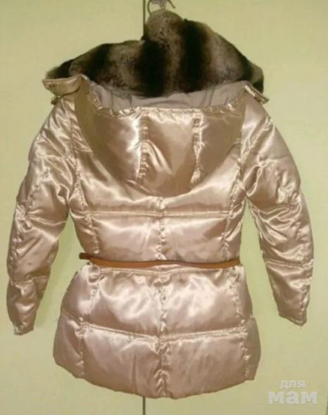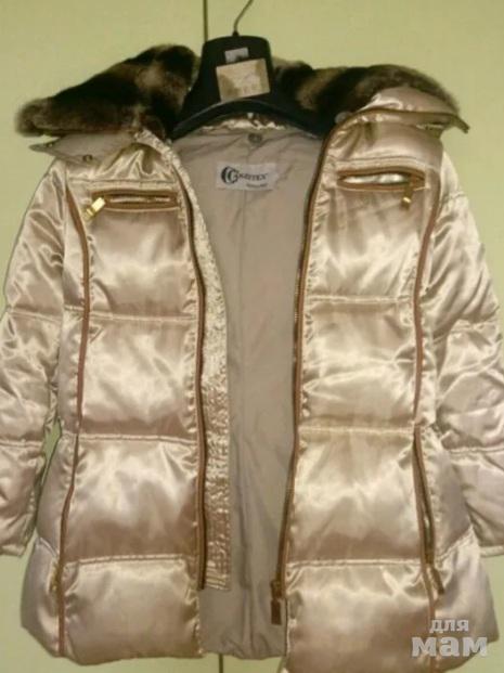 Куртка красивая, зимняя, очень теплая, носили 1 сезон, 100% пух. Перламутровые пуговицы. Вставки из кожи. Красивая ткань с отливом. Воротник из шиншилы, капюшон отстегивается.На рост 146-152. На 10-12лет.