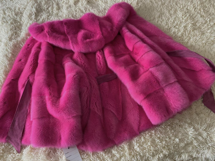 Новая эффектная норковая шубка в розовом цвете. Модель кимоно оверсайз, длина 70см, мех отличного качества. За счёт модели подойдёт от 42 до 48 размера.