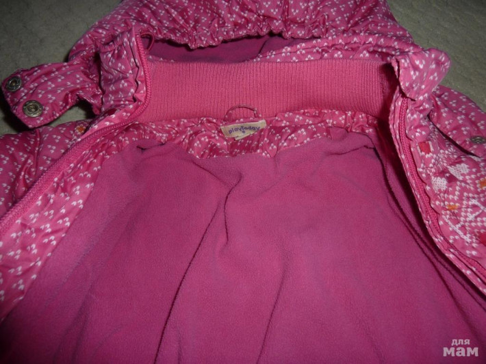 Теплое, утеплитель + флис подкладка. Цвет розовый. Капюшон теплый, можно отстегнуть. На рукавах манжеты, на воротнике трикотажная вставка, внизу пальто резинка. Нашиты светоотражающие элементы. Б/У, в хорошем состоянии.