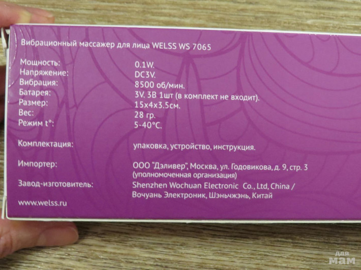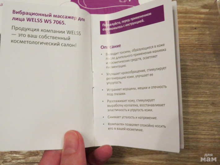 У массажера два режима работы - на вывод токсинов и на устранение морщин.Во время работы прибор слегка подогревается и вибрирует.Прилагается инструкция по использованию с подробным описанием принципов работы. Производитель: Китай. Без торга!