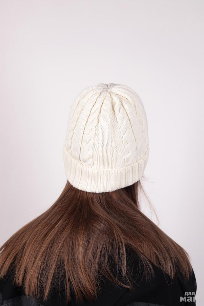 Рельефная белая шапка MiaLana от VIPShopping с отворотом из 100% ИТАЛЬЯНСКОГО МЕРИНОСА.