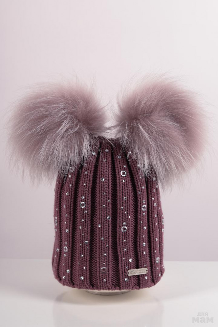 Модная шапка MiaLana от VIPShopping с двумя помпонами и стразами из 100% ИТАЛЬЯНСКОГО МЕРИНОСА .
