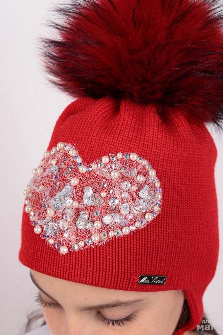 Красная шапка MiaLana от VIPShopping с помпоном на завязках из 100% ИТАЛЬЯНСКОГО МЕРИНОСА.