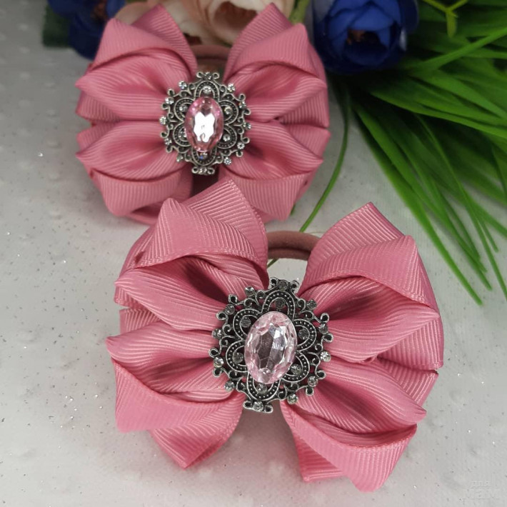 Шикарные бантики из однотонной репсовой ленты с ювелирной серединкой
