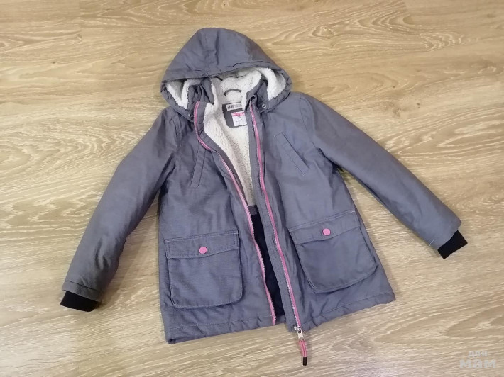 Утепленная куртка H&M, размер 128. Можно начинать носить раньше, примерно от 118см.с запасом, так как на рукавах есть трикотажные манжеты. У куртки верхний материал с пропиткой- не намокает. Внутри, по спинке и на груди мех, для дополнительного утепления. Состояние хорошее, только на трикотажных манжетах чуть катышков и все.