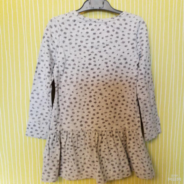 Трикотажныое платье фирмы Mothercare р. 7 лет -122 см. Плотный трикотаж. Манжеты на руковах. Очень мягкое и удобное. Цвет серый долматинец. Покупала за 1500 р. Состояние отличное, носили мало. 100% хлопок.
