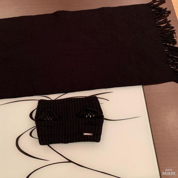 Чёрный цвет. Покупали для фигурного катания. Шарф в подарок.