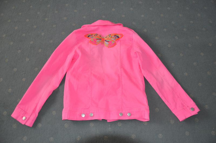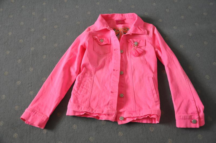 Ярко-розовая джинсовка голландской марки Мим пи. Размер 146, но маломерит! На 136-140. Сзади вышивка. Фото на модели в лс.Сост. отл.