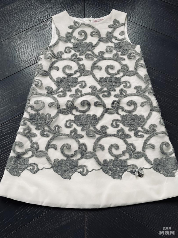 Blumarine 5 лет платье многослойное. 3500₽ Состояние идеальное. Сверху - прозрачная органза и тафта , декоративная шерстяная вышивка , основной слой - вискоза, нижний слой - подклад . Фон светлая ваниль , вышивка - дымчато серая нить . Зимняя коллекция. Замеры : Спинка 55 см , полуобхват под мышками 31 см , ширина подола 47 см .