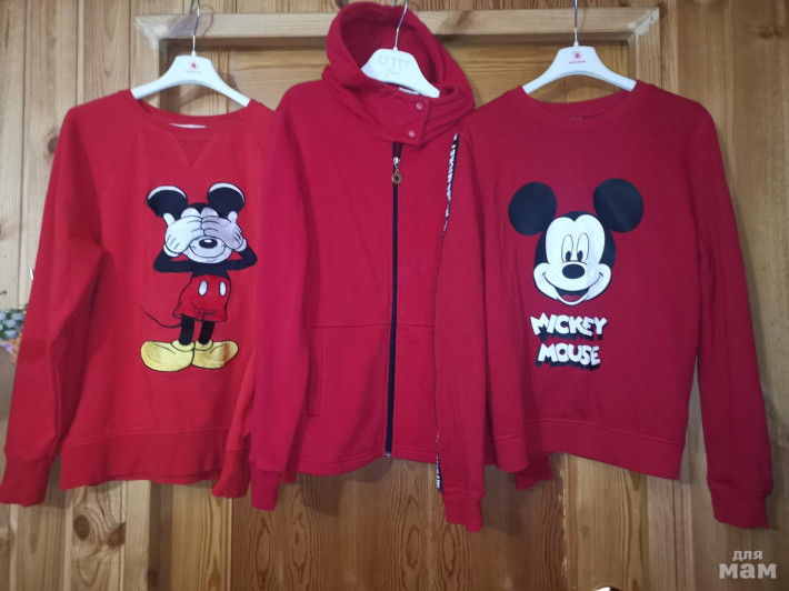 В середине Дювали толстовка на молнии, по бокам Н&М с микки