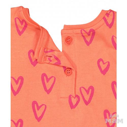 Футболка: Короткий рукав-крылышко, Однотонная бейка, Пуговицы на спине, Рисунок "Сердечки", Цвет: оранжевый