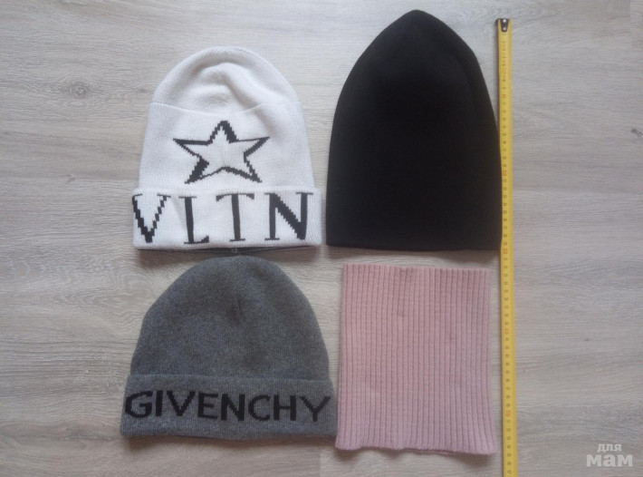 шапки в хорошем состоянии Валентино белая продана , черная 2 т.р , живанши серая 1,5 р, черная новая 800 р, снуд