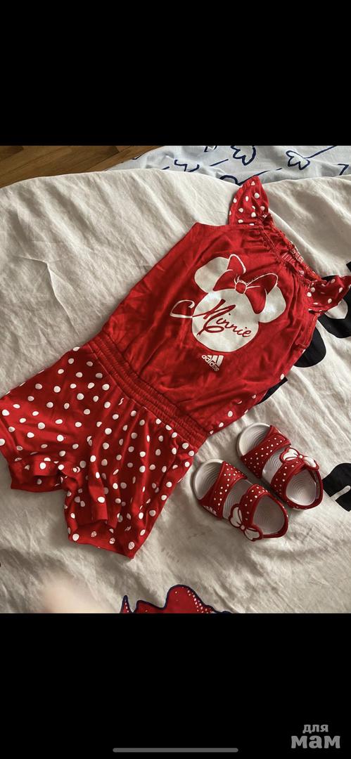 Комплект Adidas, фирменный, комбинезон и сандали, размер указан как 12-18 мес, но благодаря резинке носить можно лет до 2-2.5 запросто. Несмотря на это, почти не носили)) поэтому состояние отличное.