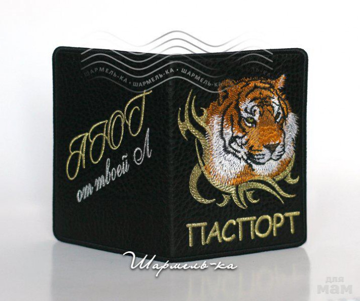 Вышитая именная обложка на паспорт "Тигр" - эффектный подарок любимому мужу, папе, дедушке https://artfancies.ru/tigr-675/