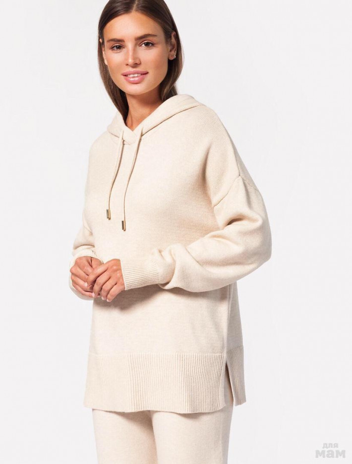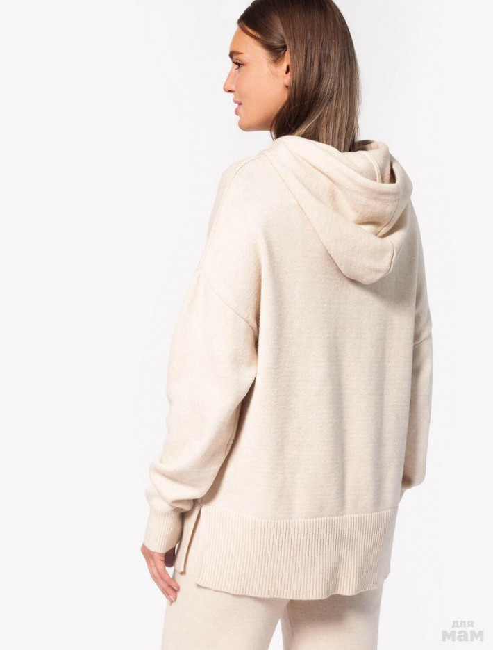 Вязаное удлиненное худи с капюшоном. Выполнено с добавлением кашемира и ангоры, что делает его мягким и очень теплым. Модель трендового цвета бургунди дополнена золотистой фурнитурой высокого качества, манжетами и разрезами по бокам. Свободный крой подходит для любой фигуры. Худи составит комплект с брюками из такой же пряжи, джинсами, легинсами.