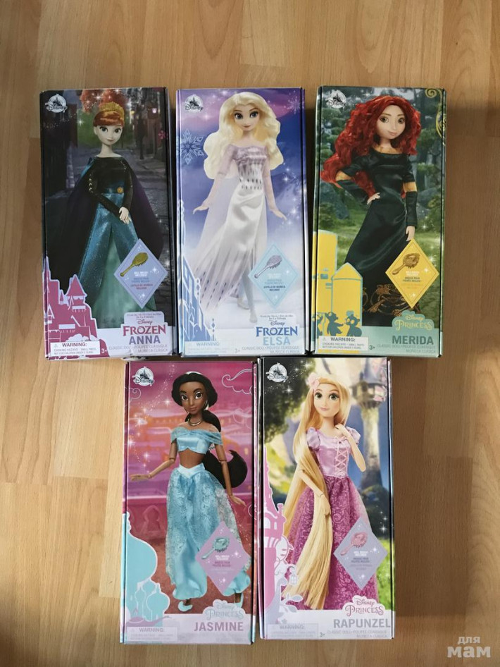 В наличии Дисней классические куклы в картонной упаковке .. это из новой коллекции , куклы с расческами . Коробку можно использовать как хранение кукл