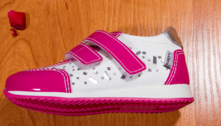 Цвет: белый/розовый, внутри - кожа, верх текстиль+лак, стразы
