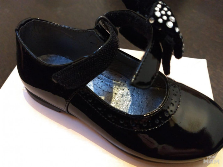 Новые туфли, пр-во Италия, шикарно на ножке! Натуральный лак/кожа, бант - бархат, стразы, р.24