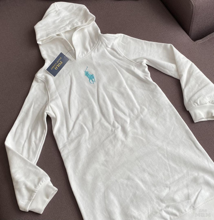 !!Белоснежное платье, удлиненное худи,будет очень комфортно в прохладный день.Модель сшита из мягкого хлопкового флиса,который хорошо пропускает воздух,не перегревая кожу.Размер L (12-14 лет).