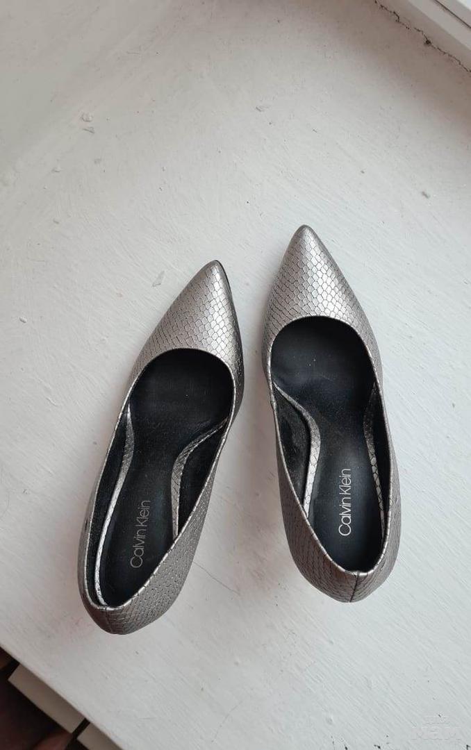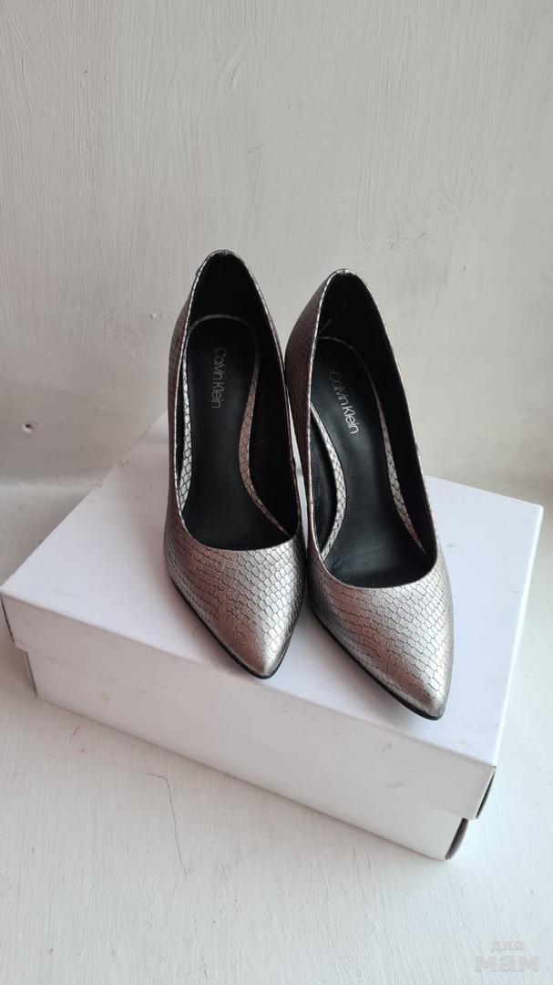 Туфли Calvin Klein 36.Кожа, каблук 8,5-9 см, пластик. Имитация кожи змеи. Стелька не вынимается. Кожаная стелька, поставила профилактику. Подошва резина.Носила один раз. Отличное состояние