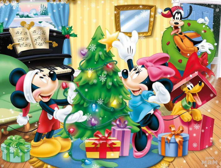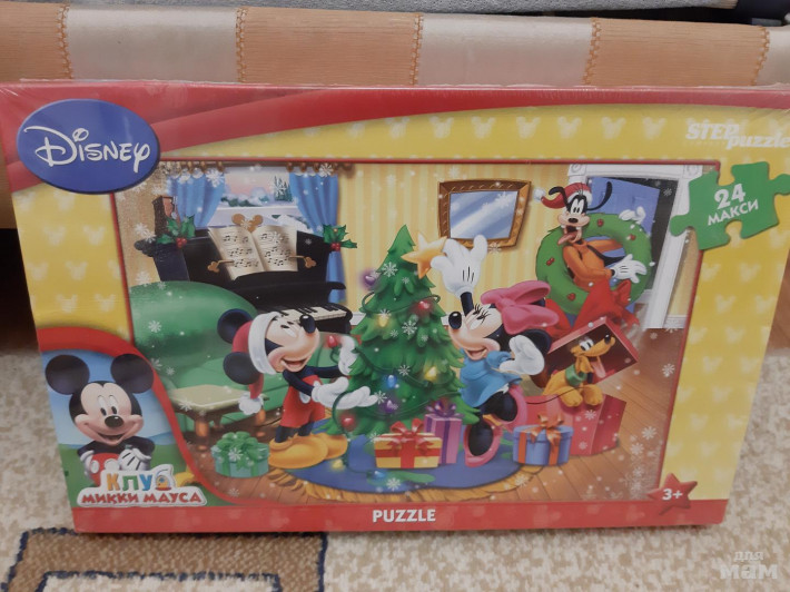 Новый, в упаковке, новогодний пазл "Клуб Микки Мауса", 24 детали макси, возраст 3+
