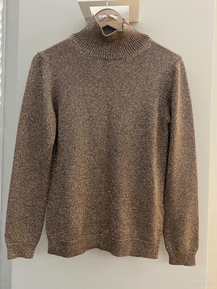 В идеале . Очень красивый и в пир , и в мир .С металлизированной нитью -переливается . Размер М.