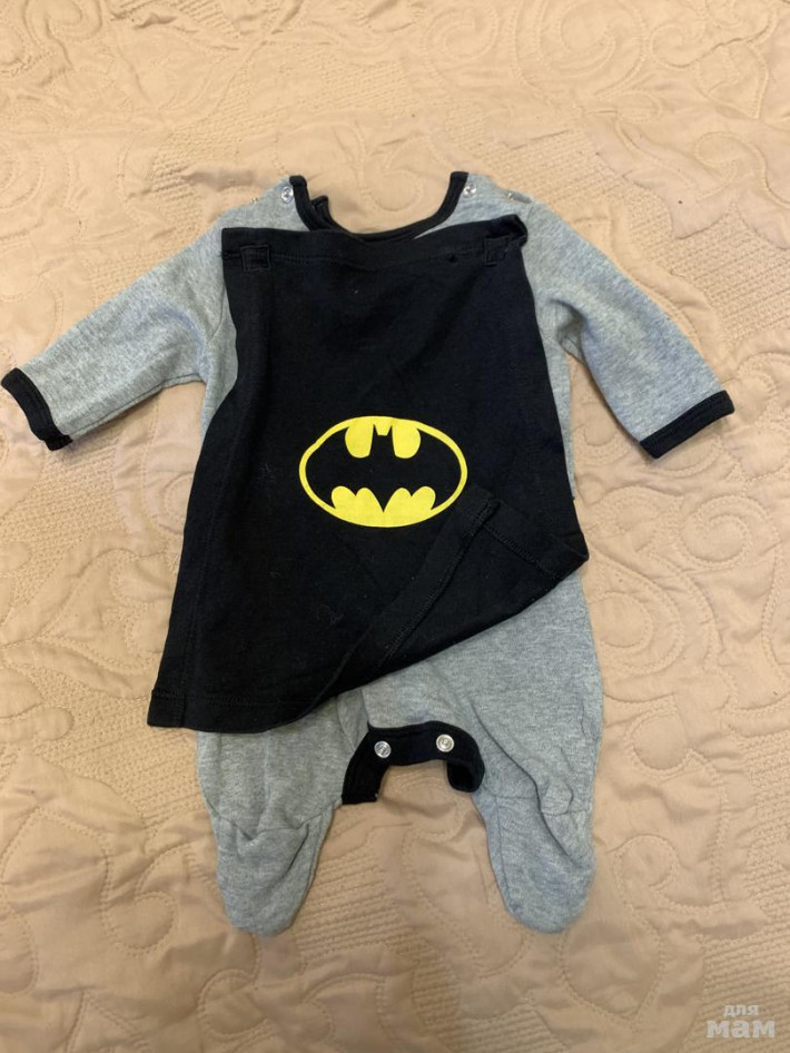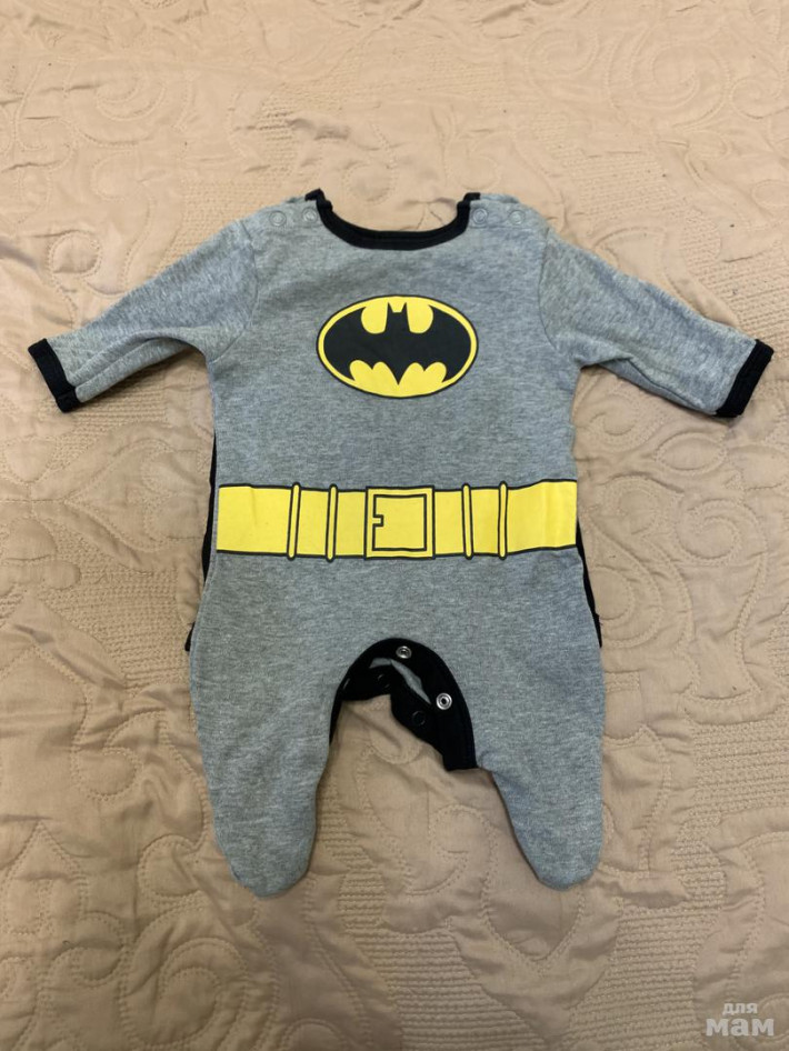 Слип комбинезон для мальчика Бетмен с плащем на липучках. Подойдёт на 0-1 мес