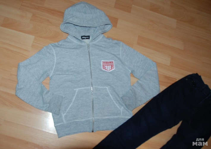 Комплект джинсы + кофта Dsquared2 12лет + Кофта тёмно серая на молнии, внутри тонкий слой флиса