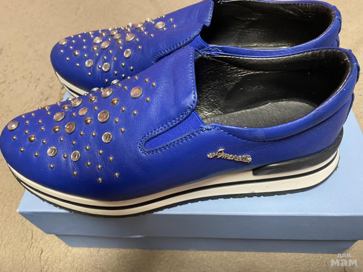 Слипоны Simonetta (Италия). Размер 40. В очень хорошем состоянии, все стразы и украшения на месте, из недостатков - мелкие царапки есть впереди, но их немного, легко удалить синим кремом. Стоили 19300р.