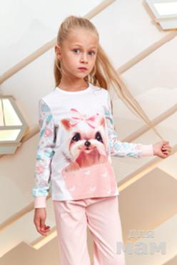 Пижама детская (фуфайка (лонгслив), брюки) д/дев Juno AW21GJ548 розовый/собачка. Цена 650р