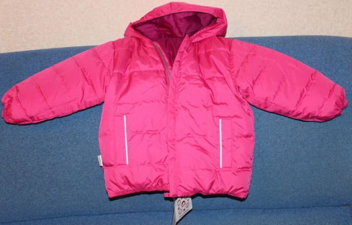Непромокаемый и непродуваемый пуховик ,расчитан на температурный режим -10 +15 Замечательный двухсторонний пуховик фирмы Hanna Anderson. Капюшон цельный (не отстегивается). Р.90(+6)см.