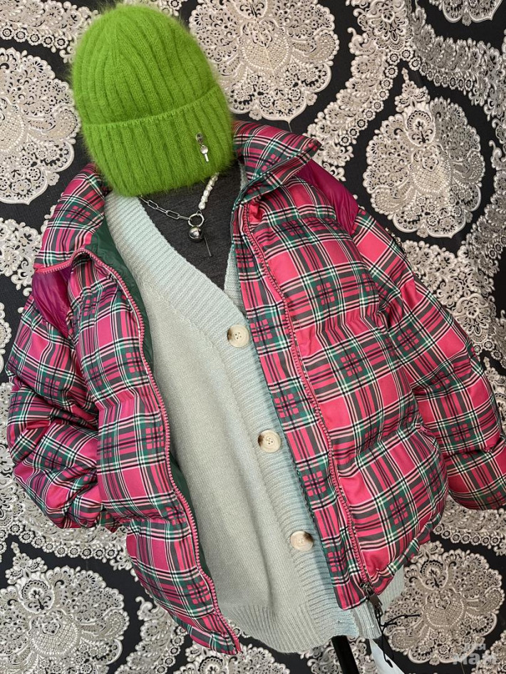 в самом актуальном цвете фуксия+зелёный + клетка, матовая ткань в влаго и ветрозащитной пропиткой