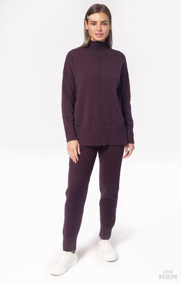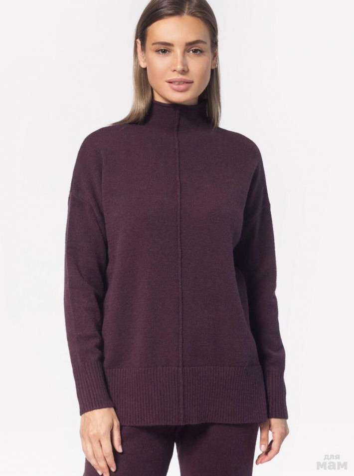 Вязаный удлиненный джемпер. Выполнен с добавлением кашемира и ангоры, что делает его мягким и очень теплым. Модель трендового цвета бургунди дополнена золотистой фурнитурой высокого качества, манжетами и разрезами по бокам. Свободный крой подходит для любой фигуры. Джемпер составит комплект с брюками из такой же пряжи, джинсами, легинсами.