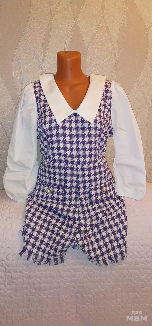 Комбинезон с шортами слитный с рубашкой.Смотрится классно.Заказывала себе ходить на работу,но к сожалению за время удалёнки он стал мне ооочень сильно впритык.