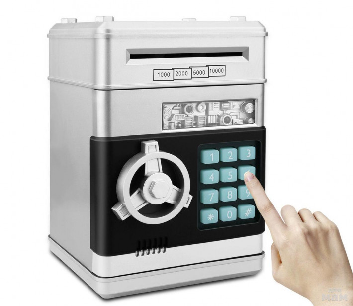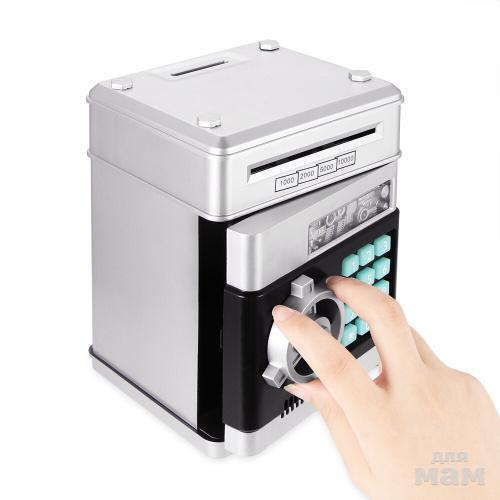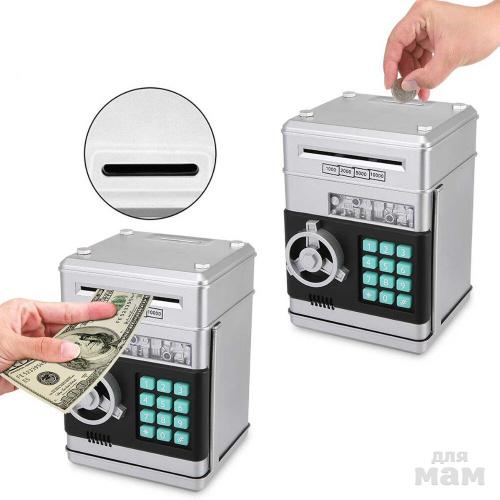 Копилка сейф для денег купюр и монет детская интерактивная, банкомат пластиковая электронная
