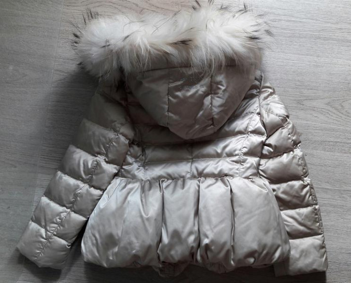 Очень красивая курточка Ману, размер 6А, на мой взгляд немного маломерит, хорошо на рост от 108 (рукавчик можно немного подвернуть внутрь, и до 116, потом на мой взгляд коротковата будет по длине. Цвет золотой, мех выбеленный енот. Стразики на месте. Состояние в целом очень хорошее, но я подумываю отдать в химчисту что бы освежить , все таки цвет светлый. Других навеканий нет. Цена пока такая, после химчистки к сезону подниму до 15000