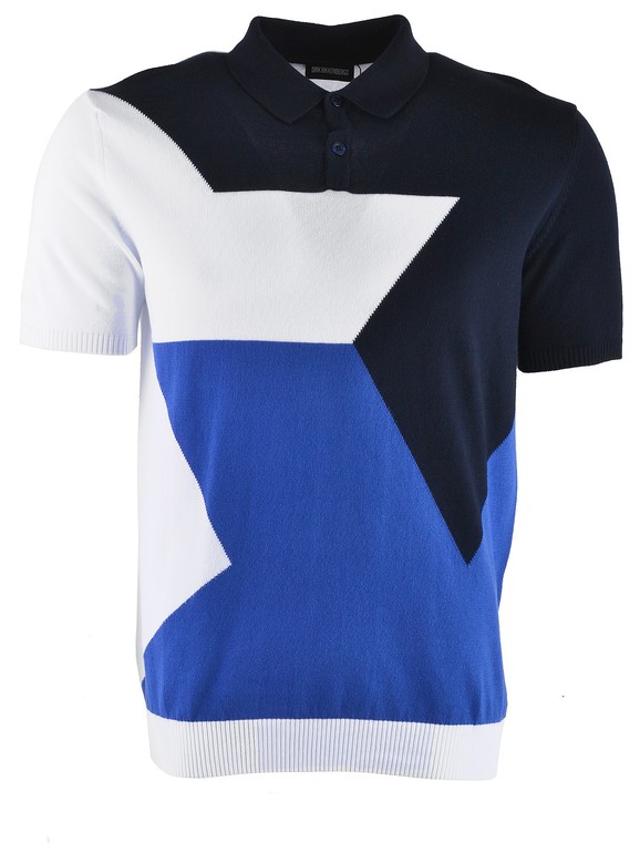 Трикотажное классическое поло Dirk Bikkembergs, декорированное контрастным графическим принтом, 100 % хлопок, размер XXL (54-56) и 3XL(56-58), цена 5000 руб.