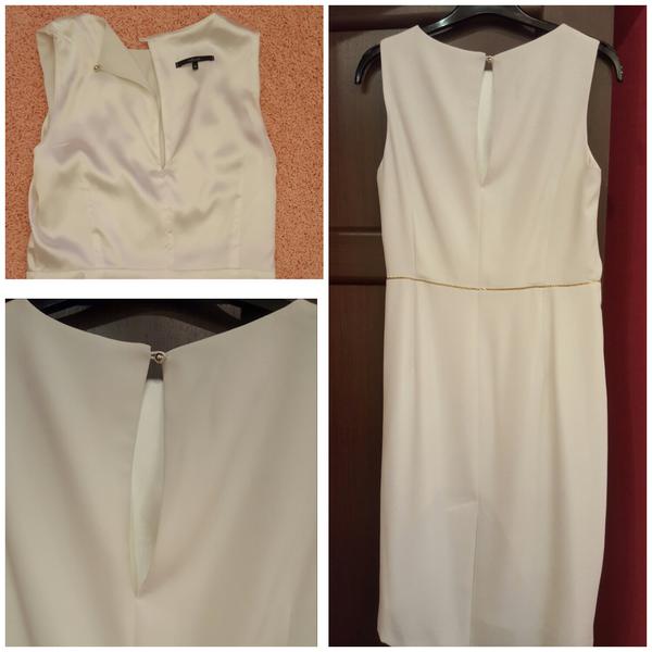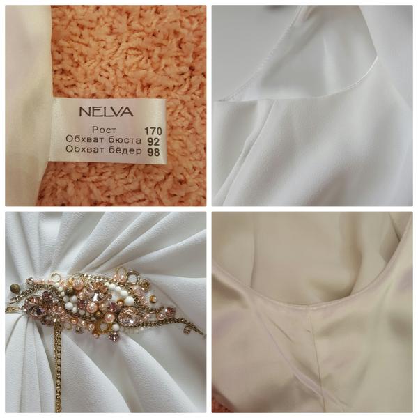 Размер 46, б/у 2 раза, без затяжек, без пятен, ткань подмышками чистая без пятен, потайной замок в боковом шве, застежка на пуговицу сзади. Украшение после стирки не отвалилось. Подклад атласный. Платье подчеркивает достоинства и скрывает недостатки за счёт драпировки!