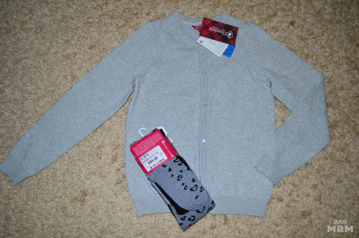 Новый с бирками кардиган, рукава не узкие, отлично на школьную форму- 750р. и в тон комплект колгот- 550р. Комплект отдам за 1000р.