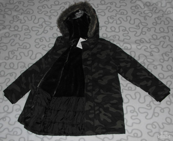 Цвет – хаки (камуфляж). Подкладка – черная. Плюш – серый.