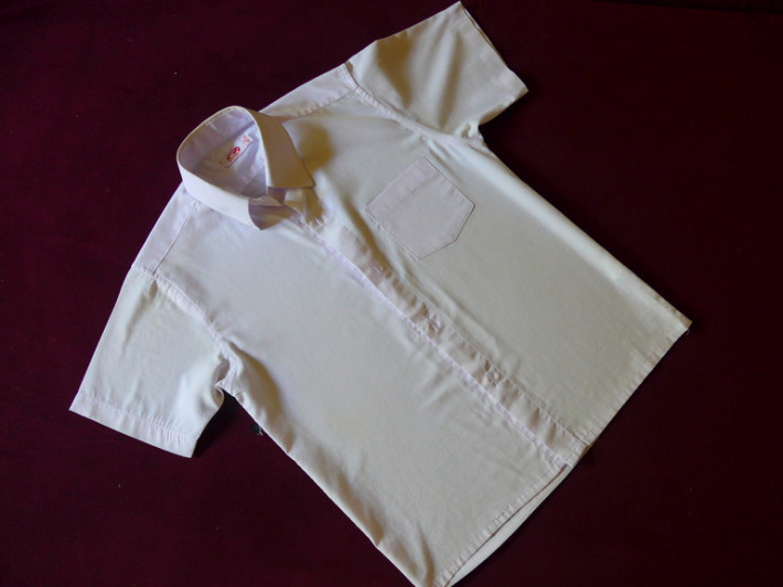 5. Белая рубашка с коротким рукавом р.128-134, без нюансов 350 рублей.
