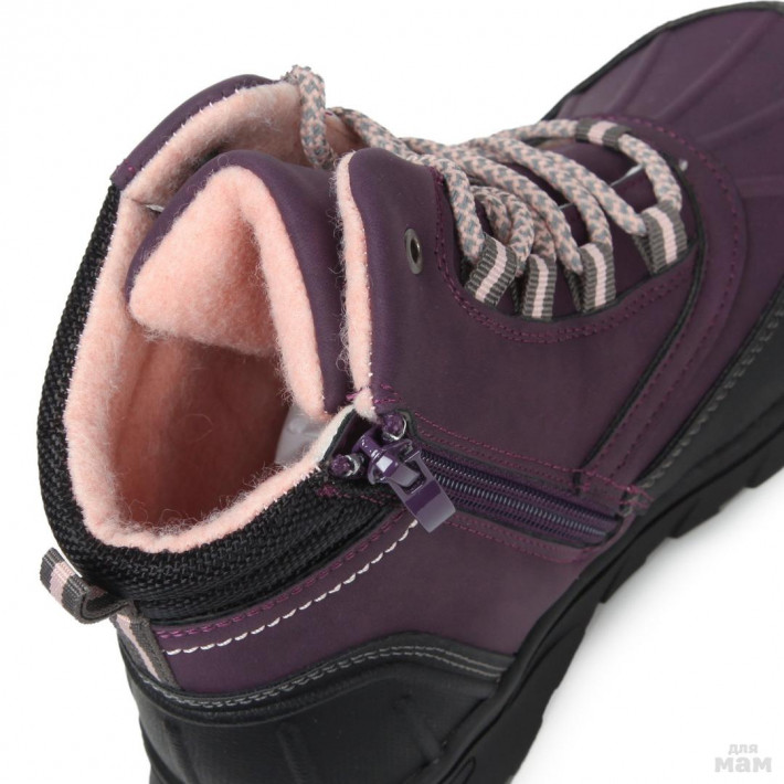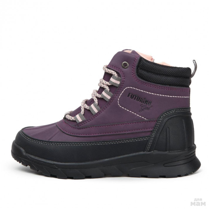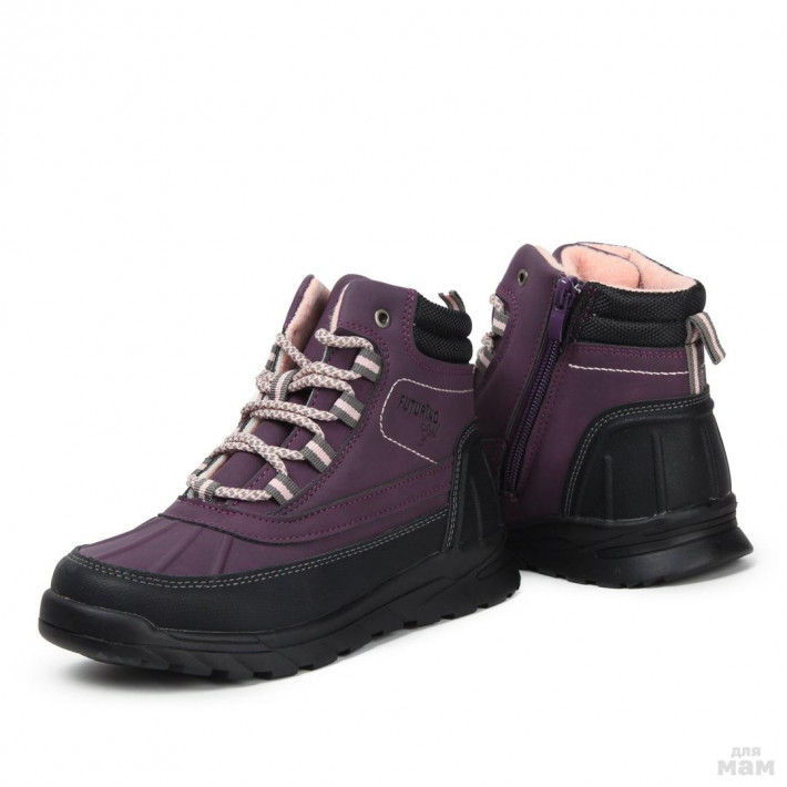 Демисезонные ботинки для девочки Futurino фиолетового цвета. Подкладка и стелька с добавлением шерсти Фиксация: шнуровка и боковая молния Рифлёная подошва Сезон: осень Материал верха: искусственная кожа с деталями из текстильного материала; Материал подкладки: текстильный материал (50% шерсть, 50% полиэстер); Материал стельки: текстильный материал (50% шерсть, 50% полиэстер); Материал подошвы: полимерный материал. Размер 36 по стельке 23,5- 24 см. Очень удобные- отходили в таких всю осень и зиму- взяли на следующий сезон, но нам они сейчас как раз, а на следующий сезон перерастем. В родной коробке- по почте вышлю.